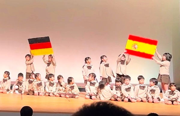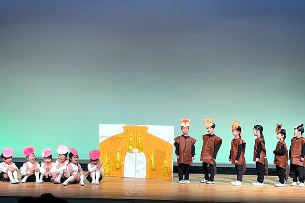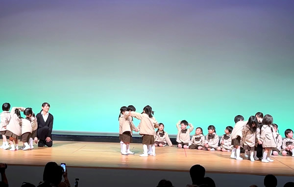 12月中旬、令和8年度の「子ども会」をRISURUホールの小ホールで開催しました。 最初に、全学年で縦割り演目を披露しました。そのあと、各クラスのお遊戯やわらべうた・合奏・オペレッタなど学年ごとに披露してくれました。ちょっぴりドキドキした様子のお友達もいましたが、元気に演目を披露していて4月からの成長を感じていただけたようです。写真屋さんの販売の前に少しだけ可愛い園児の様子をご覧下さい (^-^)