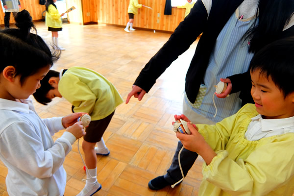 木ゴマはひもを巻くところから先生に教えてもらいました