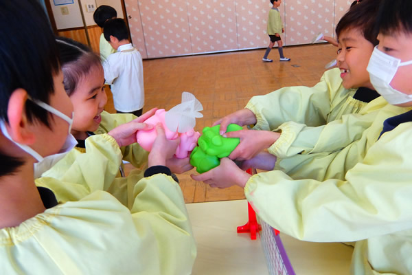 新しく「ぶたみんとん」と「紙風船」も加わり遊びは盛り上がっていますので、その様子をご覧ください。