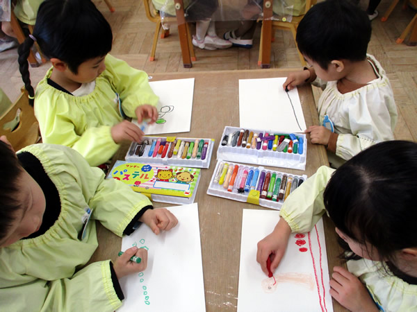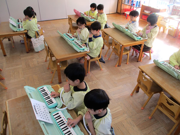 年少の「めんたるぷれい」はお話しを聞く事も上手になり、手をあげて発言する事も経験してきました。年中のグループ製作は絵本「100かいだてのいえ」から、どの部屋を描くかを話し合い、のびのびと描いていました。年長の「メロディオン・かえるのうた」は音色もそろって最後まで弾くことが出来ていました。自主練習では何度も繰り返しチャレンジする姿が頼もしく見えました!