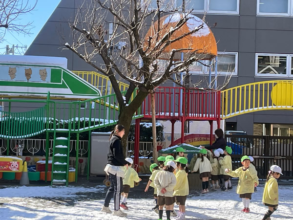 立春を迎えてもなお、冷たい空気に包まれる日が続いていた2月上旬に雪が降りました!降り積もった雪を見つけて大喜びする子どもたちは、さっそく雪遊び!「冷たい」と雪を手にして楽しんでいましたよ (*⌒∇⌒*) 数日後天気は一転、園庭ではマラソンで体力作りの子どもたち!!「頑張るぞ」と意気込んでいる可愛い姿を見て、写真を撮りながら応援しました p(^-^)q 子どもたちが元気に冬ならではの遊びや活動を楽しんでいる様子です‼