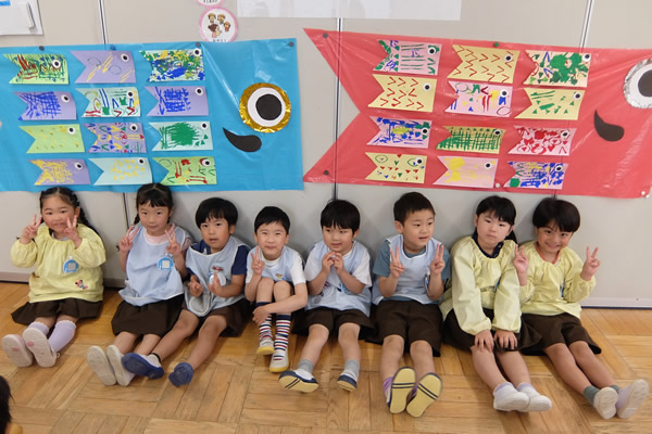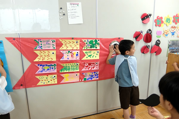 朝のお集りで先生が鯉のぼりのお話しをしてくれました