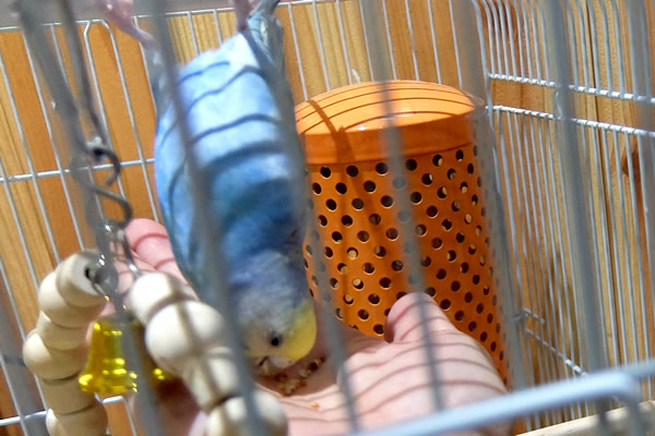 ぴーちゃんがやってきました(セキセイインコ)!お披露目の日は、お部屋でみんなで交代で見ましたよ!・・・・