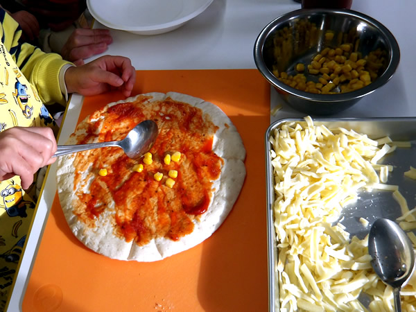 屋上菜園クラブで収穫した野菜を利用して、収穫祭をした様子です。ピザ窯でピザを焼いたり・・・・