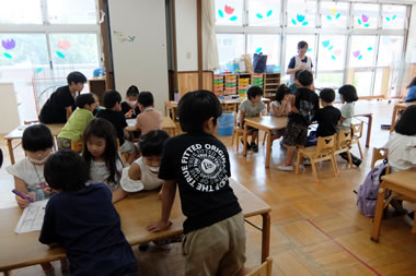 夏休み期間に卒園児を招いて、年長の時の先生達と同窓会を楽しみました。