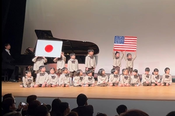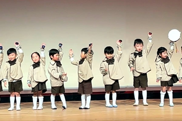 12月中旬、令和8年度の「子ども会」をRISURUホールの小ホールで開催しました。 最初に、全学年で縦割り演目を披露しました。そのあと、各クラスのお遊戯やわらべうた・合奏・オペレッタなど学年ごとに披露してくれました。ちょっぴりドキドキした様子のお友達もいましたが、元気に演目を披露していて4月からの成長を感じていただけたようです。写真屋さんの販売の前に少しだけ可愛い園児の様子をご覧下さい (^-^)
