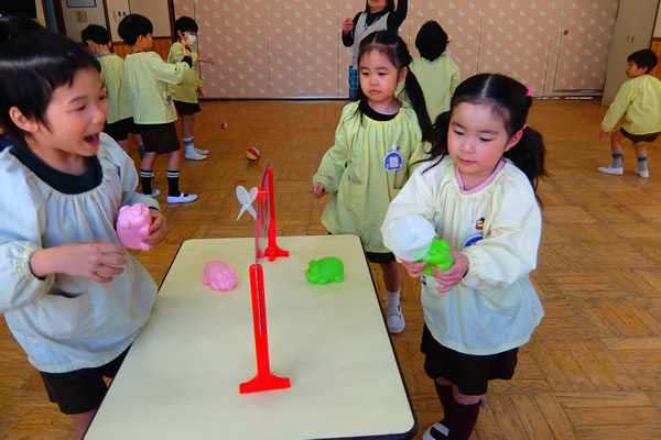 新しく「ぶたみんとん」と「紙風船」も加わり遊びは盛り上がっていますので、その様子をご覧ください。