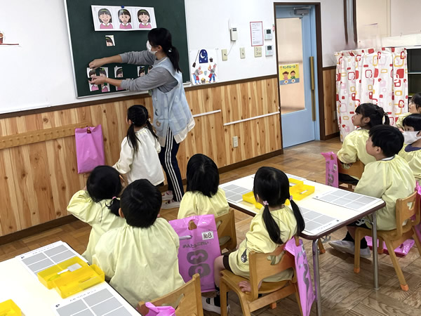 年少 上手にお話しを聞いています