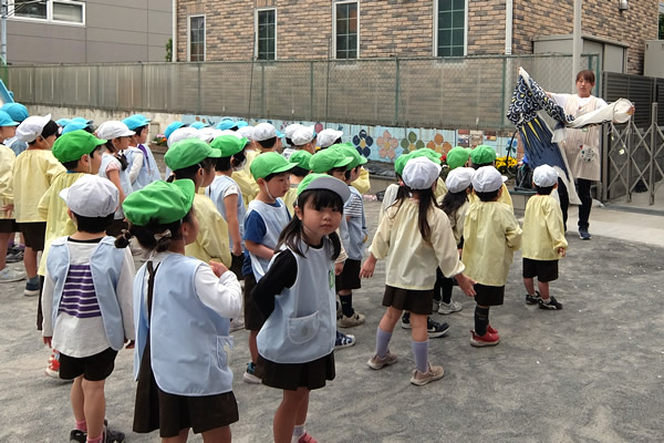 朝のお集りで先生が鯉のぼりのお話しをしてくれました
