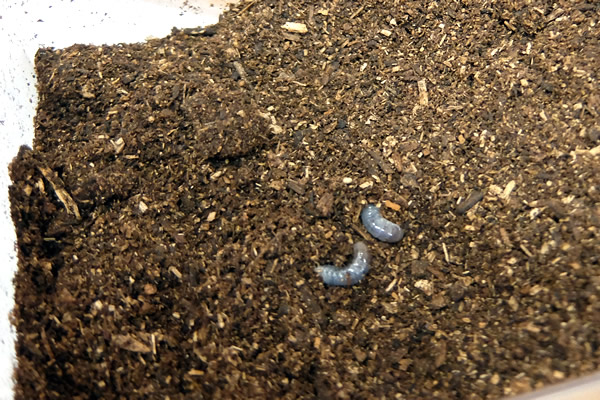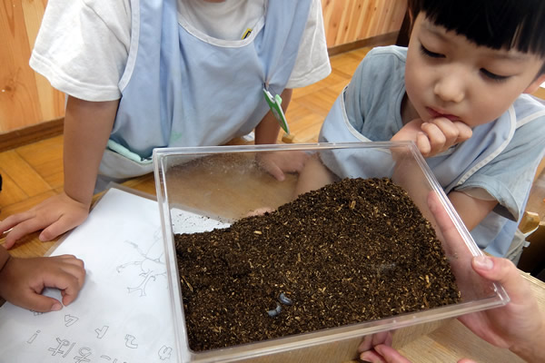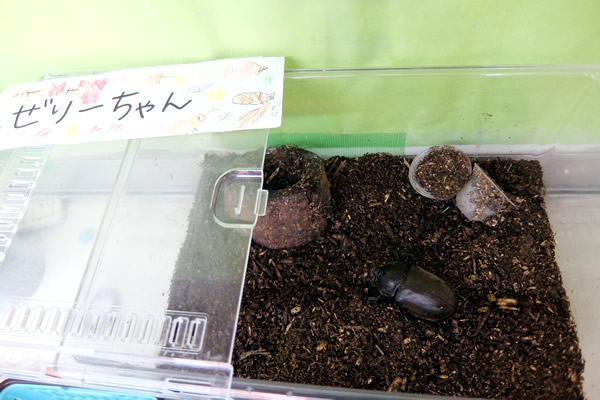 しかし、その翌日、カブトムシが亡くなっていました。子ども達はまたもや大騒ぎです。カブトムシの寿命は幼虫期間を含めると1年ほどですので、昨年度の幼虫から育てて早1年が経ったのですね。今年度も飼育ケースの中で幼虫が育ちサナギに…。そして無事成虫になるまで、今年も見守りお世話をしてくれるでしょう。