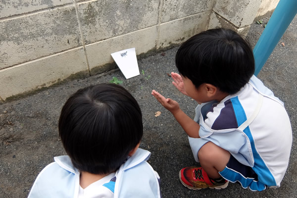 夏休み明け、子ども達が飼育ケースに幼虫2匹を見つけ大騒ぎしていました。この夏の期間に卵を産み、そして幼虫へと育っていたようです。