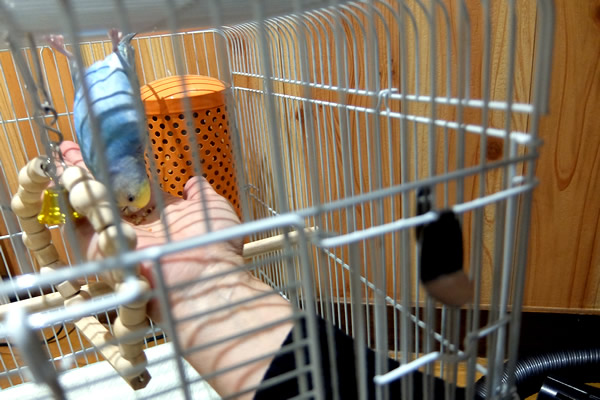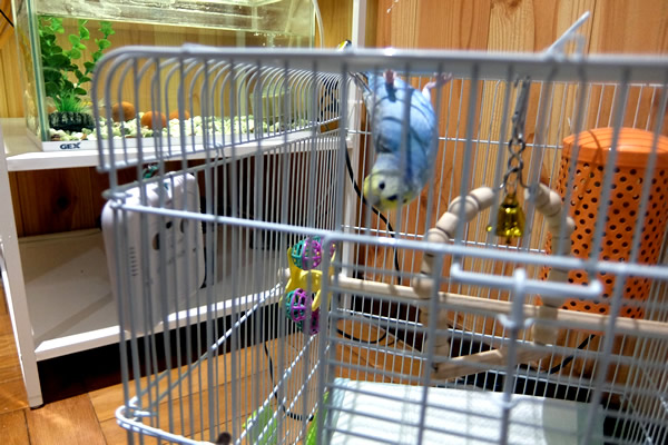 金魚もセキセイインコも元気で子ども達が話しかけたり、登園時や降園時そして自由遊びの時に子ども達が集まって見入っています。今回は鳥かごの掃除中のピーちゃんの様子をご覧ください。