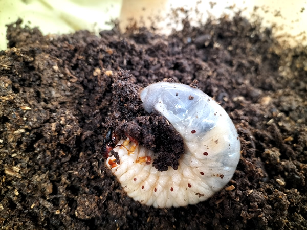また、カブトムシの幼虫も土の中で2倍、3倍に大きくなっていましたよ。その大きさに驚きです。ふかふかの栄養の入っている土で元気に育っているようです。