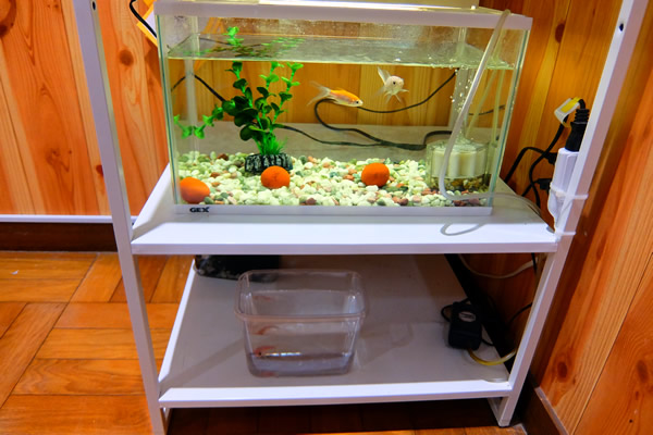 金魚やセキセイインコなどの生き物とのふれあいが11月でちょうど一年たちました。11月中旬、数人の子ども達と先生で水槽を眺め、図鑑を手にして話していました。一匹の白い金魚(しずくちゃん)が時折沈んでいく…餌を食べない、元気がないとの事。子ども達と調べた結果、別の水槽に移し塩水浴をすることで様子を見ることになりました。毎日子ども達は観察しているため早めに気づけ「どうしよう」と相談…命の大切さを感じているようです。2.3週間後に元気になったので、大きな水槽に戻し、元気に泳いでいて一安心です!