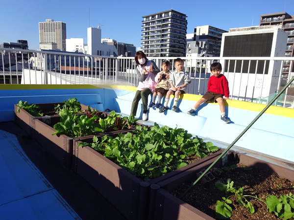 今年から保護者の方で野菜づくりに興味のある方を募集して『屋上菜園クラブ』を発足しました!!・・・・