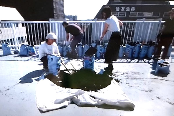 入れ替えた後、土を破棄する為、袋に詰めます...