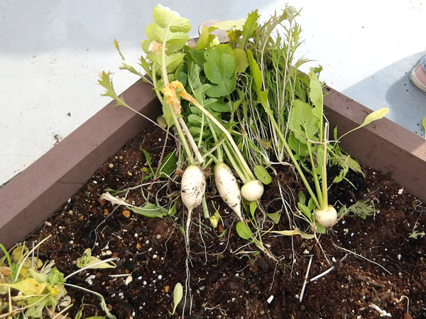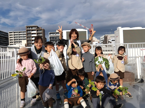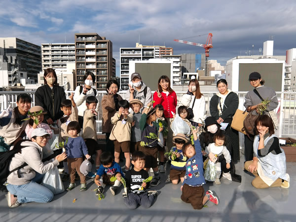 残暑の厳しかった9月から一転、屋上からの景色もすっかり秋から冬の雰囲気に。そんな中、菜園ラブのしめくくりとして、みんなで育てた野菜を収穫し、調理して、みんなで味わいました。