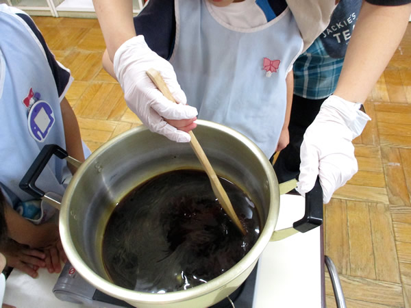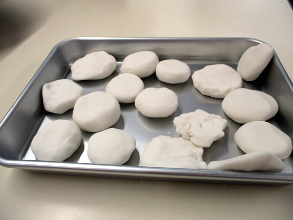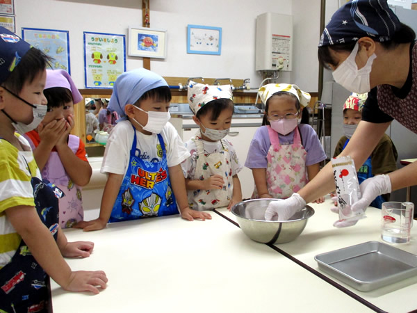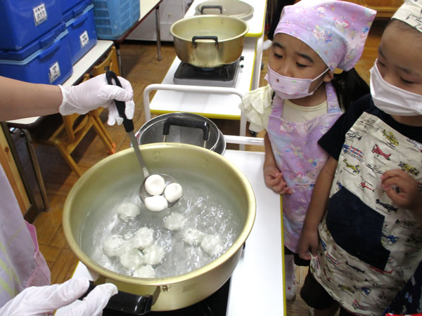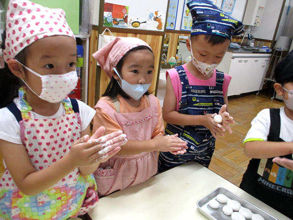 10月に入り、もうすぐ十五夜を迎えます。幼稚園では秋の実りに感謝し、お月見団子づくりをしました。はじめに、さらさらの米粉を手で触ったり、香りを確かめたりしながら、お水を少しずつ加えて生地をまとめていきました。最初はなかなか思うように固まらず、力いっぱいこねこね……。コツをつかむと次第にツルツルの生地へと変わっていきました。お部屋は「みたらし」のいい香りでいっぱいになりましたよ♫