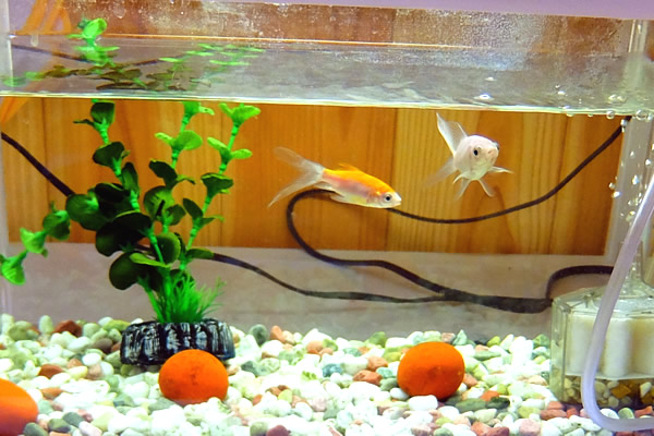 昨年秋から、幼稚園で暮らしている金魚たち。年長さんを中心に、毎日のごはんやりや、お掃除などお世話をがんばってくれています・・・・