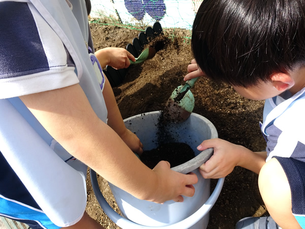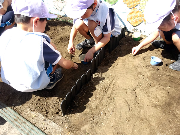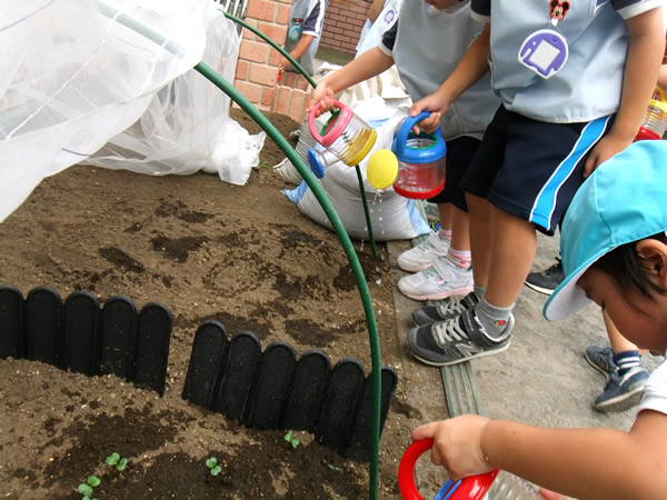 令和7年度は、“野菜”がテーマです。9月に子ども達が育てたい野菜を決めて普段の水やりから間引きや観察をして育てています。
